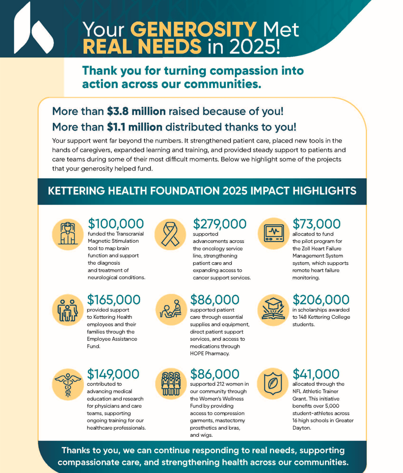 Your generosity fueled programs that supported patients and strengthened care across Kettering Health.